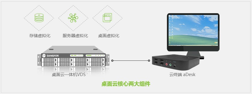 VDS桌面云一體機(jī)是集成桌面云組件(服務(wù)器虛擬化、存儲(chǔ)虛擬化、桌面虛擬化)的服務(wù)器,實(shí)現(xiàn)一體化的方案交付。