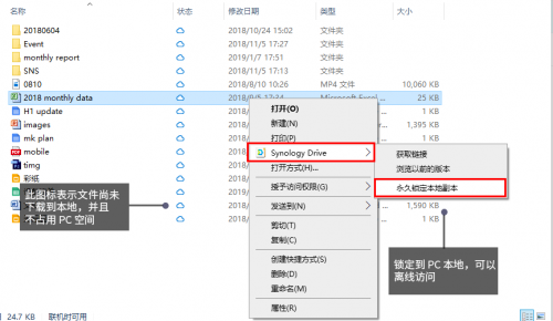 群暉企業(yè)云盤全新套件Drive 2.0能夠滿足企業(yè)不同部分和職工關(guān)于數(shù)據(jù)材料的個性化下載存取需求。職工只需在PC上裝置 Synology Drive 客戶端,并在 Windows 10 PC端新建單/雙向同步使命,即可啟用按需同步。由辦理者同享同步的數(shù)據(jù)只是在云端,只有職工點(diǎn)擊下載才會存到電腦,不需求的數(shù)據(jù)不會占用自己的電腦存儲空間。